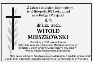 Z żalem i smutkiem informujemy, że 16 listopada 2025 roku zmarł nasz Kolega i Przyjaciel Ś.P. dr inż. arch. Witold...